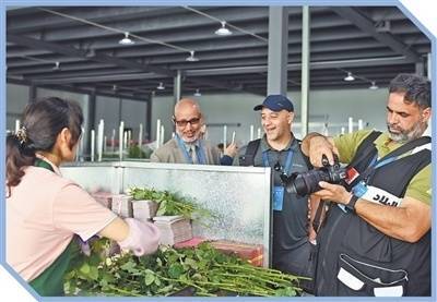 2025“一带一路”媒体合作论坛联合采访团成员在云南昆明参观绿色高效花卉生产示范基地盘盘赢。 本报记者 陈 斌摄